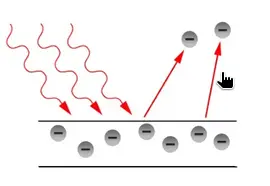 Light is observed to displace electrons from the surface of metals. Light beam is viewed as a hail of discrete particles bolstering Planck's Quantum theory.