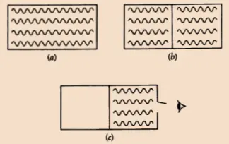 As we saw in the example of the electron, the waves of existence of the electrons were uniformly distributed throughout the box at first. Then after it was divided into two impenetrable chambers the waves existed in both of them. When, however, we decided to see where it really is, and find the answer the wave in the other box, where it isn't found, vanishes entirely.